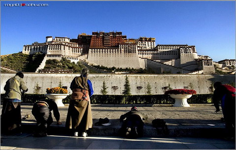 白宫是原西藏噶厦政府所在地,东大殿措钦厦是举行重大政治、宗教活动的场所。清顺治皇帝1653年册封五世达赖喇嘛之后,历代达赖喇嘛坐床、亲政、册封典礼都在这里进行。达赖喇嘛日常起居、办公、会客的地方就在措钦厦上面,这里已是白宫的最高层。从此处下望,不仅布达拉宫广场尽收眼底,而且几乎可以望到大半个拉萨城。宽阔的柏油马路、高低错落的饭店高厦、川流不息的各种汽车,标志着拉萨已完全是一座新兴的现代化城市。古老文明与现代文明,继承传统与追逐新潮,和谐的统一于这座古老又新兴的城市中。在布达拉宫参观的最后一个地方是充满阳光的达德阳厦大平台,平台有