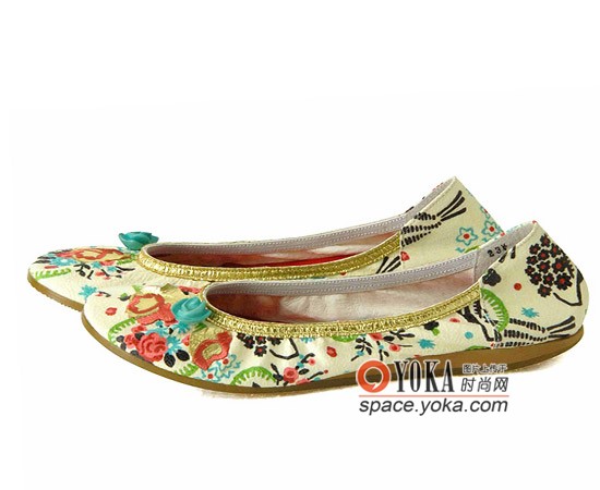 随着中国风吹红世界设计舞台,国际知名品牌设计作品纷纷垂青中国元素。大家来看看Tsumori Chisato平底鞋,这一对平底鞋有黑白两色,黑色跟图案的对比更大,而且鞋身上有绣有中国刺绣一样的图案,真的很好看。