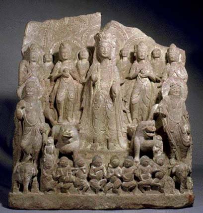 由于当时佛教在中国北方和南方,得到了一批统治者的大力支持和提倡,起到了巩固封建统治的强大精神支柱的作用,佛教为充分发挥它那“为形象以教人”的作用,便不遗余力地借助绘画直观具体的感人形象,以作为它有力的宣传手段。这一时期大规模出现的佛教寺塔、石窟壁画和为数更多的佛教行像、卷轴画,其所画佛、菩萨像以及佛传图、佛本生故事图之类,莫不是为了宣扬佛陀的普渡众生、佛法无边广大。通过图画形象,使人们相信佛教教义,以期最终达到有如南朝宋文帝所说的“若使率土之滨,皆纯此化(指佛教化),则吾坐致太平,夫复何事”的目的。