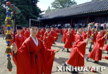 韩国传统舞蹈剧团在纪念孔子的活动中表演(来源:新华网)