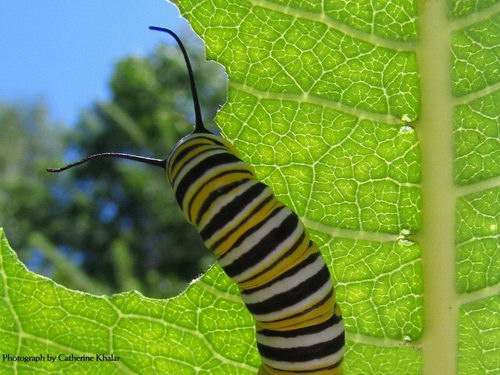 这些贪吃的小毛虫,除了偶尔有一些伸胳膊挪腿的休息动作外,什么都不做,就知道吃。当几只毛虫并排地在一起吃叶子的时候,你有时候可以看见它们的头一起活泼地抬起来,又一起活泼地低下去。就这样一次一次重复着做,动作非常整齐,好像普鲁士士兵在操练一样。我不知道它们这种动作是什么含义,是表示它们在必要的时候有作战能力呢,还是表示它们在阳光下吃食物很快乐?总之,在它们成为极肥的毛虫之前,这是它们唯一的练习。