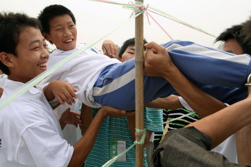 基金会正行组的18位志愿者于10月1日到达太湖后,也立即投入工作状态。为了让他们朝思暮想的孩子们在这次别具意义的聚会活动中体会到更多关爱,志愿者们要做尽可能充分的准备:有人搭建游戏用的场地;有人用心准备分发给孩子们的资料和生活用品;还有人为了孩子们能洗上热水澡而忙前忙后……