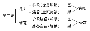 【第二:觉知多欲为苦。生死疲劳,从贪欲起;少欲无为,身心自在。】