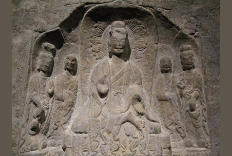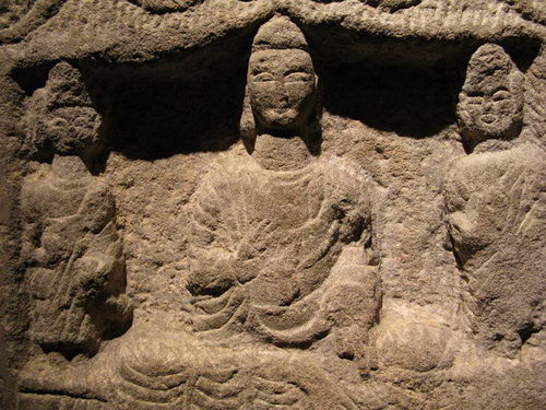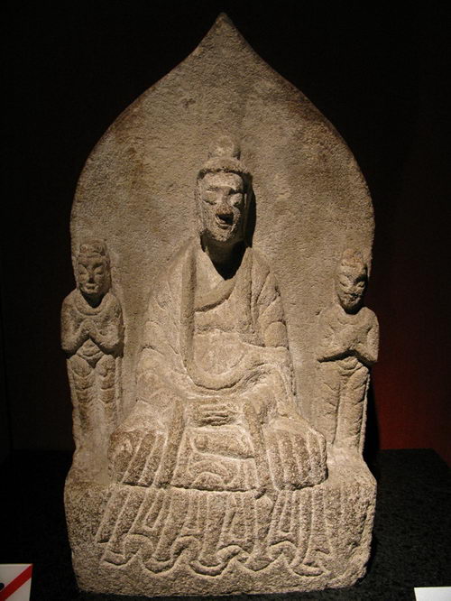 佛教在东汉时候传入中国,但主要在中原地区,到三国时,由僧人支谦和康僧会先后传入江南。相传康僧会远游至吴,孙权为之建造建初寺,并令之设像行道。曹不兴看到西方佛像,便据以绘之。唐张彦远《历代名画记》曰:“连五十尺绢画一像,心敏手运,须叟立成,头面手足肩背,亡遗尺度,此其难也,曹不兴能之。”后来由熟生巧,自成一体,所绘人物,衣纹折皱,紧贴身体,富有立体感,世人有“曹衣出水”之称,号“曹家样”。世传曹不兴绘有《维摩诘图》、《释迦牟尼说法图》等。他的画风为卫协所师承,再传顾恺之、陆探微、张僧繇等,不仅佛像画绵延不绝,风行百代,而且人物画也精益求精,蔚成大观。 卫协(生卒年岁不详),曹不兴弟子,活动时期约在三国末至西晋。卫协佛画在当时非常有名。有《七佛图》画迹载于画史,被顾恺之评为“伟而有情势”(《论画》),顾深受其影响。谢赫《古画品录》评卫协画云:“古画之略,至协始精。‘六法’之中,迨为兼善。虽不该备形妙,颇得壮气。”与张墨并称为“画圣”。另有《楞严七佛图》著录于《历代名画记》。 曹不兴的再传弟子顾恺之(346年—407年),曾为桓温及殷仲堪参军,义熙初任通直散骑常侍。顾恺之知识渊博而有才气,擅长诗赋、书法,尤其精通绘画。工人像、佛像、禽兽、山水等。当时有“才绝、画绝、痴绝”之称。他的画师法卫协而又有所变化,他的画有敷染容貌,以浓色微加点缀,不求晕饰;笔迹周密,紧劲连绵,如春蚕吐丝,春云浮空的特点。顾恺之主张画人物要有传神之妙,而关键在于阿睹(眼)中。因此他一反汉魏古拙之风,专重传神,点睛最妙。年轻时曾为建业(今江苏南京)瓦棺寺作摩诘像壁画,《京师寺记》云:“兴宁中瓦棺寺初置,僧众设会,请朝贤鸣利注疏,其时士大夫莫有过十万者;既至长康,直打刹注百方。长康素贫,众以为大言,后寺众请勾疏。长康日:宜备一壁。遂闭户往来一月余日,所画维摩诘一躯,工毕,将欲点眸子。乃谓寺僧曰:第一日观者,请施十万;第二日可五万;第三日可任例责施。及开户,光照一寺。施者填咽,俄而得百万钱。” 顾恺之不但本人是画坛一绝,即使徒弟”亦是上乘手笔。他曾教授河南武阳毛惠恒、毛惠秀(南齐人)兄弟画画,而弟惠秀尤优。毛惠秀善画佛像人手,他按每本经书的大意,作全堂经像,列佛菩萨天人数百,雍穆生动,精细典雅,后世经变之画,尽依此仿效。后毛惠秀在永明年间(南齐武帝萧赜,元年即483)召入内廷封为秘阁史。 戴逵,[晋](?——三九五)字安道,谯国铚(今安徽宿县)人,徙会稽剡县(今浙江嵊县)。博学能文,工书、画,善雕刻。其余巧芤靡不毕综。总角时,以鸡卵汗叟白瓦屑作郑玄碑,又为文而自镌之,词丽器妙。性不乐当世,常以琴、书自娱。孝武帝时累徵不就。武陵王希闻其善鼓琴,召之。对使者破琴,曰:“安道不为王门伶人。”善画人物故实,山水、兽畜,精妙绝化。年十余岁,在瓦官寺画。王长史见之曰:“此童非徒能画,亦终当致名。”中年画行像甚精妙。庚道季语之曰:“神明太俗,由卿世情未尽。”戴云:“唯务不当免卿此语耳。”又善铸佛像及雕刻。曾造无量寿木像高丈六并菩萨,潜坐帷中,密听众论褒贬,辄加详研,积思三年刻像乃成,迎至山阴灵宝寺。其观音男相端静,与世所睹观音作天女相者,皆不及也。米芾《画史》记载他收藏有一幅戴逵《观音像》“天男相,无髭,皆贴金”。为瓦棺寺所塑五世佛与顾恺之《维摩诘像》壁画、狮子国(今斯里兰卡)送来的玉佛,并称“三绝”。曾绘《五天罗汉图》,为后世《罗汉图》之创始。戴逵及其子戴颙之前的佛像画,基本不离摹仿外国范本的路子,到戴氏父子,“范金赋采,动有楷模”,并讲究造型比例,中国佛像画走出自己的路子,自戴氏父子始。 画史画论上记载的佛像画家还有:西晋张墨画迹有隋朝官本《维摩变相图》,著录于《贞观公私画史》,为见于文献记载的《维摩诘像》之最早者。西晋有司马昭。晋庾阐《乐贤堂颂并序》云:萧祖时明皇帝,雅号佛道,手摹灵像。峨峨隆构,岌岌其峻。阶延白屋,寝登毛俊。神心所寄,莫往非顺。灵图表像,平敷玉润。游虬一壑,栖鸾一丛。川澄华沼,树拂椅桐。林有晨风,翮有西雍。高观回雪,疏飙倚窗。洋洋地猷,恢恢天造。思乐云基,克配祖考。仰瞻昆丘,俯怀明圣。玄珠虽朗,离人莫映。清风徘徊,微言绝咏。有邈高构,永廓灵命。”东晋有史道硕(作《梵僧图》)。