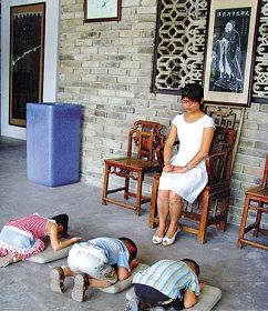 中央电视台的“新闻周刊”栏目报道了广东东莞一个幼儿园在开学时,设立孔子像,老师和家长先向孔子像行礼,然后让自己的孩子给老师行跪拜礼。影像显示,老师端坐在孔子像前,地上设拜垫,三个孩子跪拜于其上。