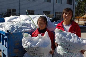 十一点,仪式在感动中圆满结束。义工引领各村代表来到发放场地,和村民们一同核对受助村民名单和衣物包数,并一同装车,大悲中学的学生们也纷纷加入了义工行列。罗各庄的村长在接收清单上签字时,写上了这样的一句话“感恩!谢谢大家的关爱!”