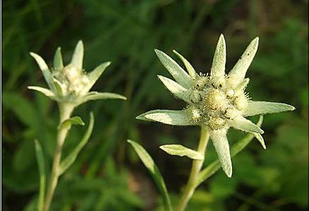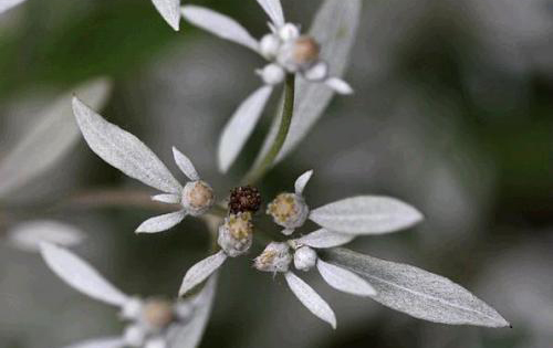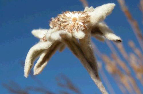 多年来,我一直以为“雪绒花”就是雪花,许多人也和我一样这样想。直到今年8月亲眼见到雪绒花,我才意识到以往犯了主观臆断的错误。那是在阿尔匹斯山腰的一个小店里,纪念品琳琅满目,有一种镶嵌在精致的镜框中的银币大小的花朵引起我的注意:毛绒绒的白叶片环抱着五六个黄色的小花蕾,德语名为 “Edelweiss”, 直译是“高贵的白”,标价几十欧元。小店里以这种野花为图案的纪念品还真不少,从钥匙链到木雕,应有尽有。我从来没有见过这种野花,诧异其价格何以如此昂贵。店主是个中年男子,去过尼泊尔,十分健谈,介绍说那是阿尔匹斯山的特产野花,只在高达2000米以上的岩石中生长,是国家的特级保护植物。这种花稀有罕见,是送礼的最佳礼物。