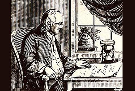 富兰克林后来辗转去到英国,原先以为在英国可以得到资助,实现他自己创业的想法,但是因为进展不顺利,他只好先留在英国工作。英国的印刷工人大多是酒鬼,因为他们认为喝酒可以增长气力,但是富兰克林不同,他认为节制饮食能使人头脑清醒、思想敏捷、提升效率,所以他不仅不喝酒,还是个素食主义者,于是工厂里的英国佬都嘲弄他是「喝水的美洲人」。尽管喝水不喝酒,富兰克林还是特别努力、排字速度也最快,因此总是被指定作一些急件,所以他的工资也特别高。