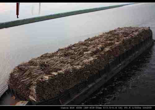 我们乘坐的这架小巧的直升飞机,很快就捕捉到了一艘巨大的运送木材的牵引船,上面堆积着成千上万立方米的木材。从飞机上看下去,堆积的原木完全像一座小山一样。最开始,飞机内旋着绕它飞行,我这一侧基本没有拍摄角度。看来飞行员很细心也很有经验,他又试着反过来绕了半圈,让我试着拍了几张。