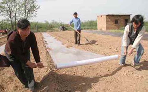 据农民介绍,土地覆盖农膜后,由于改善了土壤温度、湿度,生长季节可以延长,产量能够提高20%到50%,个别作物甚至可使产量翻倍,如花生等。通过覆盖农膜增加产量是农学家的新技术发明,但是,谁也没有考虑到的是,我们的生态环境能够承受多少农膜污染?目前,我国每年约50万吨农膜残留在土壤中,残膜率达到40%。这些农膜在15-20厘米土壤层形成不易透水、透气很差的难耕作层。