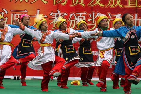 清晨,学校的操场上早早地搭起了舞台,“我愿意把爱全部给你,把希望带给你……”仁爱之歌回荡在山间的小学校。远远望去,红色的幕布格外醒目,“爱在北川赈灾物资发放暨仁爱杯书画大赛颁奖仪式”跃入眼帘,主席台的两侧摆放着此次“仁爱杯”书画大赛孩子们的获奖作品。一幅幅色彩斑斓的图画,工整俊秀的书法,生动活泼地描绘出孩子们眼里的感人画面,抒发着他们心中永远不熄的热情、乐观和坚强,也寄托着他们对逝去亲人和朋友的无限哀思。