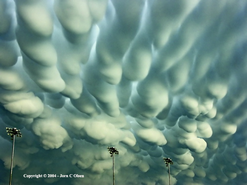 除了感叹大自然的奥妙,也对摄像师高明的构图技巧十分佩服。这一系列的 mammatusclouds 图片是由 JornOlsen 所摄,地点在美国的內布拉斯加州(Nebraska)。
