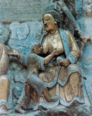 然而,佛教造像最为丰富多姿的却是非主要礼拜对象的罗汉群像雕塑。据文献记载和现存实物所知,有雍熙元年(984)在浙江天台寿昌寺造五百十六罗汉,咸平四年(1001)自颍川郡迎五百罗汉铜像于汴京大相国寺,汴京开宝寺东院造五百罗汉,大中祥符元年(1008)河南辉县白茅寺造五百罗汉,咸平至干兴年间(998~1022)“技巧夫人”严氏以檀香木透雕瑞莲山五百罗汉,庆历五年(1045)至七年广东曲江南华寺木雕五百罗汉,绍圣二年(1005)至政和五年(1115)陕西黄陵万佛洞造五百罗汉,政和四年河北行唐普照院造罗汉一堂,宣和二年(1120)四川阆中香城宫造五百罗汉,宣和六年宋齐古自闽中运金漆木雕五百罗汉置山东长清灵岩寺,绍兴(1131~1162)初临安静慈寺塑五百罗汉像,金国统治下的山西平遥慈相寺也有天会年间(1123~1137)所塑五百罗汉等。