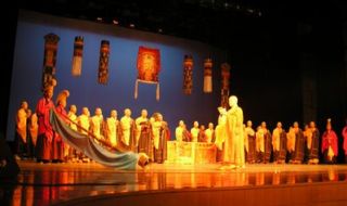 第三,创作手法的多元构成了和谐。如中国传统手法:我们可以清晰地听到广为流传的传统作品多段体表现手法的熟练运用。西洋手法:作品运用交响曲大乐章结构以及丰富的和声色彩善于表现戏剧性效果的优势,充分表现了宏大场景。现代手法和创新手法的巧妙运用:唱中有念,唱中有说,声乐器乐交替,声中有器,器中有声,互相应和,结构自由。