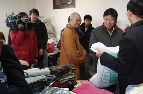 学诚法师:我们曾经到过一些边远的县里去救灾扶贫。刚刚开始的时候,我们是同县民政局联系,但是在个别地方遇到的情况是这样的:他们关心的是你有没有项目给他们做,如果说让他们把贫困人员组织起来,由我们给贫困人员分发救济物资,他们往往没有多大兴趣,不是很愿意做。于是,我们就找到乡政府,让他们帮忙统计,乡镇政府非常乐意做。每次访贫,事先我们都会做调研,千家万户,谁住在哪里,需要什么东西,需要药品还是需要油,需要什么衣服,都登记好,然后我们一次性送去。送去的时候也是通过当地乡镇政府,然后一包一包送到每一个人的家里去。对于慈善,关键的是做这件事情的人———寺里的法师、义工、护法居士们首先要有慈悲心,心地要善良,这是非常重要的。对受赠的这些人,对他们要有慈悲心,而不是说,谁的东西用不完了捐出来,帮你送去;更不是说做这件事情是为了扬名;或者现在大家都在做这个事情,我们也来凑个热闹。我觉得这样做的话,意义不大,甚至会养成一个不好的风气。