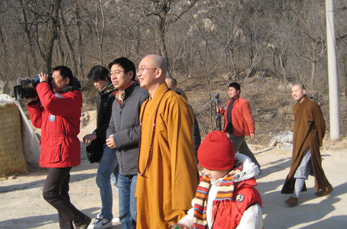 王鲁湘:我今天来到龙泉寺最大的感受,是中国佛教界这么有名的法师主持的寺院,居然比我到过的任何一个寺院都要显得清净,甚至因为今天天气特别寒冷的原因,有点荒寒的感觉。当然今天我才知道,因为它刚刚恢复才两年多的时间,正在建设中。还有一个突出的印象,就是我感觉龙泉寺僧侣学习的气氛非常浓厚,步入龙泉寺,感觉到的是一种学院式的气氛,它是一种清修的环境,房子简朴,陈设简单,家具基本都是普普通通的白松木本色。书房、教室虽然都很狭小,但是书架却很充实,僧侣们都在很认真地学习。这让我感觉到龙泉寺是中国佛教复兴的希望所在。