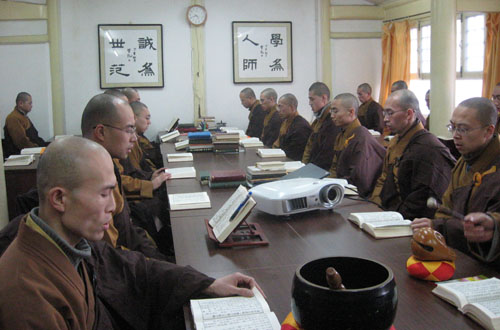 王鲁湘:“看到您书架上摆的书,以律宗和净土宗的居多。往生净土在中国民间的影响很大,而律宗似乎不太为人所熟悉。您认为中国佛教要想复兴,僧人严持戒律是否很重要?”