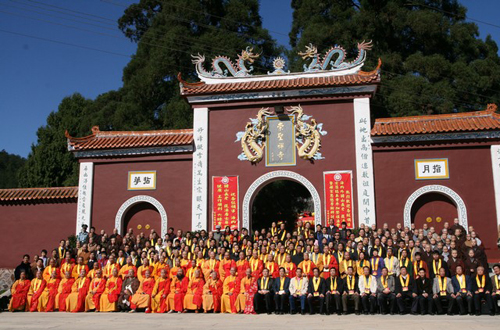 雪峰道场历史上名声赫赫,法脉传承绵延不绝,这次的纪念同样也引起了海内外不少人的关注,台湾莲海法师的贺词写道:“纪念福州雪峰崇圣禅寺义存祖师圆寂一千一百周年大典殊胜圆满:一代师宗功培后学,万家名望化及多方,僧伽乃六合之团体,菩萨以众生为自身,秀毓三山遒胎闽海,光腾七塔缘熟甬江。世界佛教发展协会会长 莲海 和南 2008年10月24日 瑾贺”。当入住宾馆的全体参会人员到达雪峰寺时,福建佛学院的学僧们、雪峰寺两序大众以及一些护法居士排在道路两侧,一边念诵着药师琉璃光如来的名号准备欢迎来宾的到来。看看场地,已经站满了人,大概近有六七百人之多。上午九点半,开幕式由福建省佛教协会副会长兼秘书长本性法师主持正式开始,国家宗教局徐远杰司长、福建省民宗厅林致知副厅长、福州和闽侯县政府部门代表、专家学者代表杨曾文教授、海外代表净良长老、金源集团林峰总裁和师父、承办方雪峰寺方丈广霖法师等人分别为开幕式致辞。