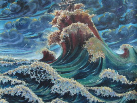 很快,大象载着惊恐的游客向背离海滩、覆盖着灌木丛的山上狂奔而去。海边其他不工作的大象,也纷纷挣脱沉重的锁链向高处跑去。然后,人们看见巨浪袭来,开始跟着大象狂奔。