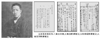 许寿裳在《亡友鲁迅印象记》一书中,追记“从章先生学”的情况时说:“章先生出狱以后,东渡日本,一面为《民报》撰文,一面为青年讲学,其讲学之地,是在大成中学里一间教室。我和鲁迅极愿往听,而苦与学课时间相冲突,因托龚未生(名宝铨)转达,希望另设一班,蒙先生慨然允许。地址就在先生的寓所——牛込区二丁目八番地民报社,每星期日清晨,我们前往受业,在一间陋室之内,师生环绕一张矮矮的小桌,席地而坐。先生讲段氏《说文解字注》、郝氏《尔雅义疏》等,神解聪察,精力过人,逐字讲解,滔滔不绝,或则阐明语原,或则推见本字,或则旁证以各处方言。自八时至正午,历四小时毫无休息,真所谓诲人不倦。……章先生讲书这样活泼,所以新谊创见,层出不穷。就是有时随便谈天,也复诙谐间作,妙语解颐。其《新方言》及《小学答问》两书,都是课余写成的,其体大思精的《文始》,初稿也起于此时。我们同班听讲的,是朱蓬仙(名宗莱)、龚未生、钱玄同(夏)、朱逷先(希祖)、周豫才(树人,即鲁迅)、周起孟(作人)、钱均夫(家治)和我,共八人。前四人是由大成再来听讲的。听讲时,以逷先笔记为最勤;谈天时以玄同说话为最多,而且在席上爬来爬去。所以鲁迅给玄同的绰号曰‘爬来爬去’。鲁迅听讲,极少发言。”