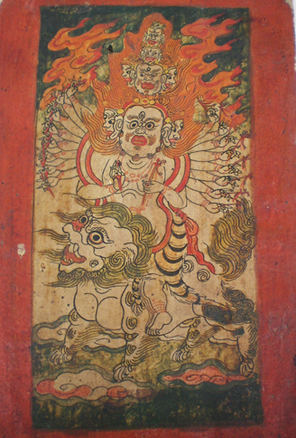 研究匝尕的起源必须从唐卡的起源讲起,笔者认为两者是同时出现的。因为,虽然两者功能不同,但是两者是形式相近的艺术形式,今天依旧如此,其创作人群是同一批人;由于宗教功能的相似,两者的起初的界限是模糊的,两者是从一种艺术形式分化而成的;匝尕与唐卡的宗教功能既关联又互补,人们对二者的需求同时出现,必然促使其创作同时展开。
