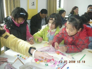 每个小朋友都亲手制作了两张贺卡,一张送给自己的父母,感谢他们的养育之恩;另一张送给灾区学生的,寄去远方的祝福。