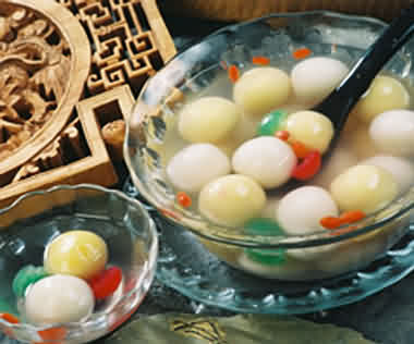 吃汤圆也是冬至的传统习俗,在江南尤为盛行。“汤圆”是冬至必备的食品,是一种用糯米粉制成的圆形甜品,“圆”意味着“团圆”“圆满”,冬至吃汤圆又叫“冬至团”。民间有“吃了汤圆大一岁”之说。冬至团可以用来祭祖,也可用于互赠亲朋。旧时上海人最讲究吃汤团。古人有诗云:“家家捣米做汤圆,知是明朝冬至天。”