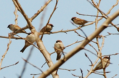 就在夕阳衔山、晚炊袅袅升腾时,忽然,一阵成鸟的啼叫声从樱桃树的上空传来。近前一看,只见两只大麻雀,嘴里叨着小虫,正站在枝头上焦急地鸣叫,似乎在呼唤鸟笼中的孩子们。我远远地观察它们的动静,一两分钟后,笼中的鸟儿纷纷把尖尖的小嘴伸向笼外,两只大麻雀开始分别从鸟笼的两个方向喂食,它们把衔有食物的嘴巴隔着鸟笼伸向小鸟的嘴里,待小鸟伸长脖子贪婪地把食物接过去咽下后,才如释重负地停下它们那深情的呼唤。刚把食物喂完,两只大麻雀又飞向不远处的田野觅食去了,秋天的原野上,有许多鸟儿在鸣叫着弹弹跳跳,把越来越少的食物争抢着衔进口中,有些自我裹腹,有些衔回巢中,喂养那些嗷嗷待哺的生命。