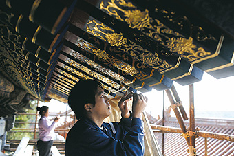 这项2008年6月刚刚列入国家级名录的非物质文化遗产叫做“官式古建筑营造技艺”,传统上,这套营造技艺包括“瓦木土石扎、油漆彩画糊”八大作,其下还细分了上百工种。在封建等级制度之下的古代建筑从材料、用色到做法,都要严格遵循营造则例,代表最高等级的紫禁城无疑是这一整套营造技艺的登峰造极之作。