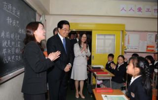 胡锦涛的到来给学校带来了春的温暖。离别前,胡锦涛邀请学校师生和侨团侨领合影留念。快门声响,留下了胡锦涛对这所百年老校的关爱之情,更为山手中华学校全体师生留下了难忘的记忆。