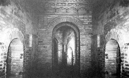 如今,无可辩驳的数据为我们勾勒出秦陵地宫的精确形制。当初开挖的墓圹(坑穴)主体东西长170米、南北宽145米,开挖范围和墓室均呈长方形;在墓圹边沿建造有一圈巨大而且精细的夯土宫墙,高出地面竟达30米,顶部距封土表面最浅处只有1米左右。这一围绕墓室筑就的细夯土墙,在所有其他陵墓中从未发现过,无疑是秦始皇陵的一个创举。更令人惊奇的是外墙面的9级台阶上(每级宽2米),都钻探出残瓦碎片--难道埋入土下的墙侧台阶上,竟然还修建了9圈长廊?《汉书》曾载秦陵“下彻三泉……中成观游,上成山林”,其中“中成观游”始终让人不知所云。如果封土之内有9圈廊房或者其他建筑,以便让秦始皇的灵魂参观游览,那么古人的记录就言之成理。若不是钻探发现残瓦,谁又能想得到如此庞大的地面建筑竟会藏在封土之下。