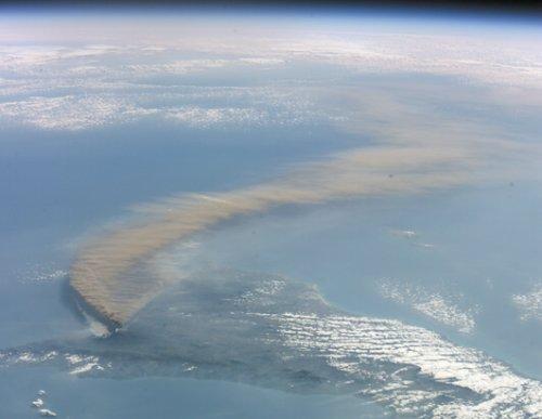 美宇航局“奋进”号航天飞机上的宇航员在经过加勒比海时拍摄到的飓风“迪安”肆虐的照片。当时,飓风“迪安”强度达到4级,以时速150英里向加勒比海各国逼近。
