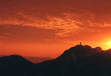 “心依道胜,理会玄远,遍游名山,密契仙洞。”这是唐玄宗对司马承祯的评语。的确,在许多道教名山中,都留下了高道司马承祯的足迹。司马承祯(647~735年)字子微,道号道隐,是盛唐时期的著名道士,上清第十二代宗师,有《坐忘论》、《天隐子》、《服气精义论》等多部著作传世。他出身官宦世家,年少好学却无心仕途,二十一岁服巾褐入道,在衡山追随著名道士潘师正学习上清经法。此后,司马承祯开始遍游道教名山。