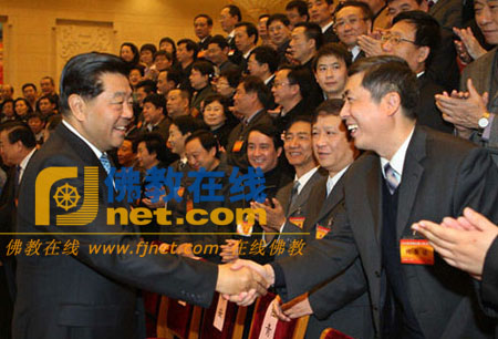 佛教在线北京讯 2009年1月7日,2009年全国宗教工作会议在北京隆重召开,中共中央政治局常委、全国政协贾庆林主席会见与会代表并发表了重要讲话。他强调,各级宗教工作部门要认真贯彻党的宗教工作基本方针,围绕中心、服务大局,强化管理、促进和谐,全力维护我国社会安定团结的良好局面,以优异的工作成绩迎接新中国成立60周年。