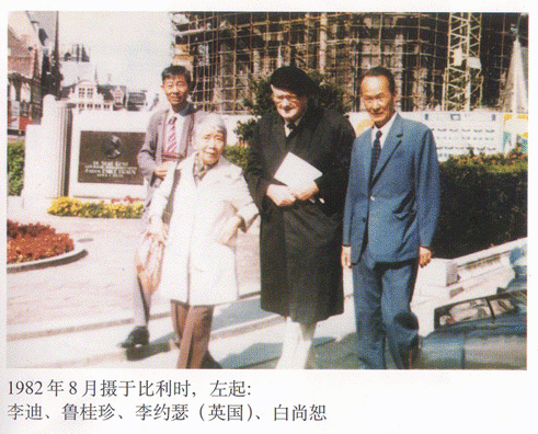 奇缘之成,不可遗漏李大斐夫人的功劳。“三人世界”亲密无间、情同姐妹兄弟,协同工作、旅游以至游玩,可谓古今罕见。李大斐是研究肌肉学的权威,也是皇家学会的院士。她性情温良,深识大体,对夫君事业全力支持。但毕竟隔了一层,不能深入李约瑟的精神世界。李约瑟是个血性男儿,易于激动;又是个老实巴交的书呆子,经常需要女性的抚慰。爱妻大斐身体欠佳,1948年起患更年期早衰症,60年代初因白内障而一目失明;又因肺癌切除左肺;70年代患老年性痴呆症,丧失记忆;生活无法自理。1972年最后一次到中国大陆,时刻需人扶持左右。鲁桂珍义不容辞地代行大斐的某些职责。