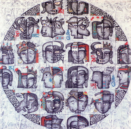 尽管艺术形式随着时代的发展在不断变化,然而艺术作品所传递出的信息却是与藏族人民的生活息息相关。此次展览,艺术家们通过油画、摄影、综合材料、装置等艺术形式,提出了一系列具有深刻现实意义的问题,诸如关于文化遗产、民族记忆、传统与相对现代之间的矛盾与融合以及在全球化进程中艺术家在其文化延续中的角色转换等问题。这些藏族当代艺术家们都在发挥他们的创作天赋,在社会发展变迁中,不断改变自己,不断探索新艺术形式,来记录下他们对这些变化的反应和思考。
