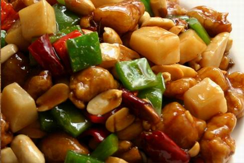 原料:鲜猴头菇300克,去皮花生米100克、青红椒丁、冬笋丁20克