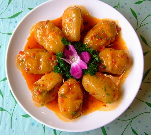 制作方法:1、鲜猴头菇洗净挤干水分,切丁加面粉,放入油锅内炸至金黄色捞起备用;