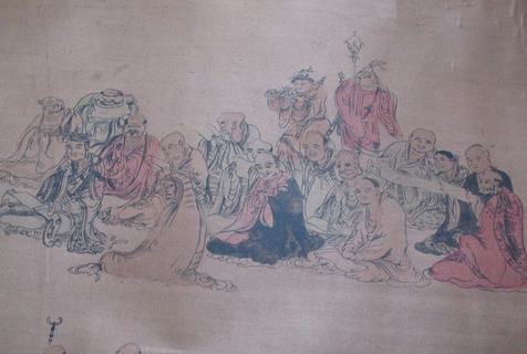 明朝历时甚长,时代又不算太远,佛画虽不炽旺,著录于史籍图录的佛画作者却还有不少。擅长佛画之士人尚有倪端、张仙童、沈鸣远、顾应文、张继、上官伯达、熊茂松、李麟等人;而兼作佛像、偶写罗汉的文人画家和画院画家则更多,有陈远、朱芾、戴进、王绂、吴伟、张路、邵弥、孙克弘、张世禄、文从简、崔子忠、金声、蓝瑛、邹喆、张瑞图等人。他们不仅作卷轴佛画,一些人还曾作佛寺壁画。吴伟曾在南京昌化寺壁画五百罗汉,戴进尝图壁于报恩寺,是其中的例子。明朝帝王如明宪宗朱见深,也有佛画《达摩像》传世。