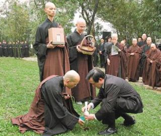 据台湾《联合报》报道,台湾法鼓山昨天为提倡环保不遗余力的圣严法师举行植存仪式,法师骨灰长埋土中,归于土,化为泥,成就眼前的美景。圣严身后仍以色身教导世人放下对身体的执着,体会生死无别。