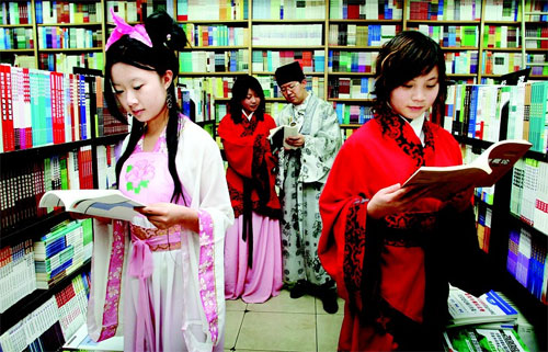 世界读书日:十多名大学生身着汉服吟诗。