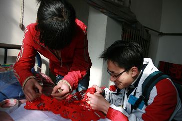 一位来自日本的仁爱志愿者,目前正就读于中央音乐学院。他此行的目的就是想给孩子们鼓励,并寻找创作的灵感。当他走访到一个女孩子家时,陪着她一起贴窗花,还装作很不懂的样子让孩子为他介绍农具。女孩子也越来越有自信,开朗地为这位大哥哥做起了小小讲解员。