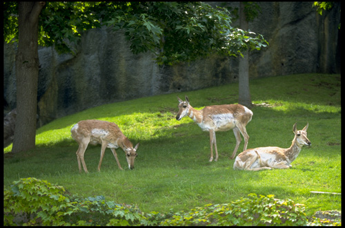 在周广军的带领下,记者来到林场的次生林地。走不了几步,就发现了鹿群。这些鹿并不怕人,距离二十多米它们仍然自由地觅食、休憩,毫不惊慌。据介绍,此时是梅花鹿毛色最美的季节。它们刚刚褪去了黄黑色的冬装,穿上橙红色间杂着黄点的夏衣,在绿色的树林映衬下显得格外耀眼。忽然间,一阵山风吹来,雄鹿警觉地抬起头,也许是感到有危险,它带领着鹿群向林地深处跑去,那身姿矫健挺拔,疾如闪电。