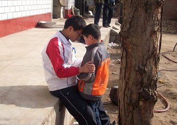 中午达到河北顺平县城,匆忙吃了一顿香喷喷的面条后,分组就立即奔赴各自的目的地。我被分配去县中学看望该校的6名孤儿,同组的有王卫、路鑫、文昭和来自日本的朋友园田芳雄,我和芳雄的角色是仁爱哥哥。说实话,在车上阅读了仁爱哥哥的详细行动指南后,感到压力满大的,担心自己不能完成任务。