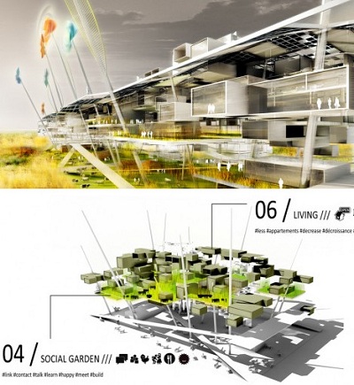 这一设计不仅仅是为了打造一栋建筑或者一座城市,而是针对整个社会进行的一次重新构想。打造者CTRLZ建筑师事务所表示:“我们相信建筑不再是有关形式或者功能,而是有关各种各样的联系。网络系统的发展向我们展示了链接与联系的力量。”商业设施、食品生产、装饰性花园、住宅、公共空间以及能源获取都能以一种强调居民合作的方式联系在一起。