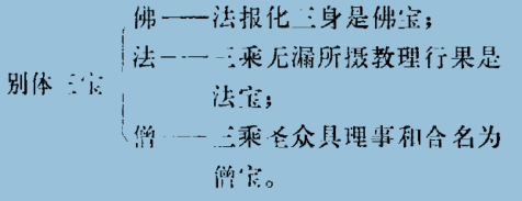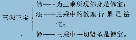 4.三乘三宝,即佛陀为教化三乘人所现的身,所说的法,所化的僧众名为三乘三宝。