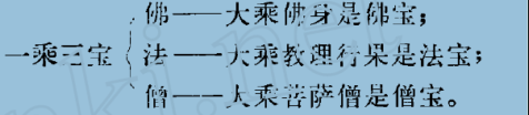 3.一乘三宝,如来所说教法,以一乘为究竞,如《胜览经》说:“说一乘道法,得究竟法身,于上更无说一乘法事。”《法华经》说:“十方佛土中,唯有一乘法。”故依究竟归趣来说,唯有一乘三宝,说二说三皆为权化而设。此中唯取一乘所有三宝的体而言,约摄持来说,方便所修若法若僧,亦是一乘三宝体摄。