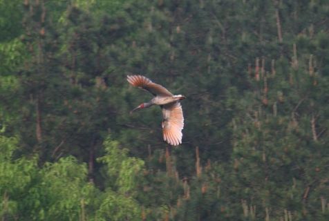 朱鹮有着一身洁白的羽毛,在这一尘不染的白色中镶嵌着几颗红宝石:那就是它们那红色的头顶,弯曲的嘴尖和细长的脚;它们用树枝和干草把“家”垒在树杈中;它们生活在水边,因此泥鳅便成了它们的美味佳肴。我真想天天捉泥鳅喂它们吃。