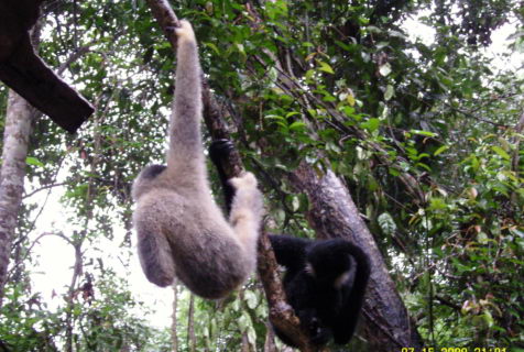 《绿野寻踪》栏目主要是为我们介绍各种目前数量很少的珍稀动物。今天讲的是长臂猿——猿中的一种,因“手臂”很长而得名。长臂猿和猴子可大不一样,如:它的手臂能转圆圈,而猴子不能。雄长臂猿为黑色。雌长臂猿为金黄色。另外,长臂猿的叫声也非常悦耳。有长臂猿的森林一定长得十分茂盛,因为长臂猿爱吃各种野果,排泄出的粪便里有没消化的种子,种子落到地上,又生长了起来。这样,森林就越长越茂密:长臂猿还是一位造林模范呢!