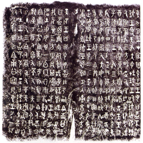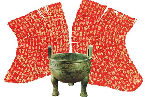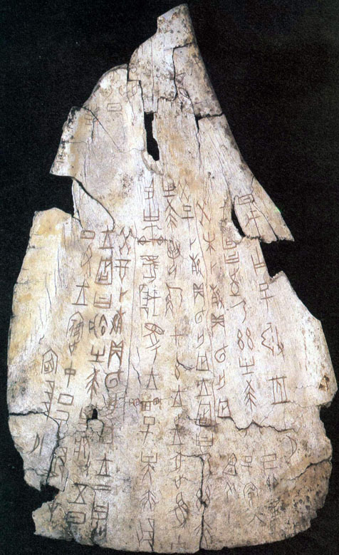 1899年(清光绪二十五年)王懿荣在一种称为"龙骨"的中药材上面,偶然发现一些刻画符号。"龙骨",就是龟壳,而上面的刻画符号,后来经考古学家和古文字学家证明,就是"甲骨文"。它最初出土于河南安阳小屯村的殷墟,是距今约三千四百年前的商代遗物。后来经过不断挖掘,出土甲骨片达十万枚之多;而上面的刻画符号,也总计达4500个,其中1700个被逐一破译和解释出来。甲骨文内容大多为"卜辞",乃记载占卜吉凶之事件。